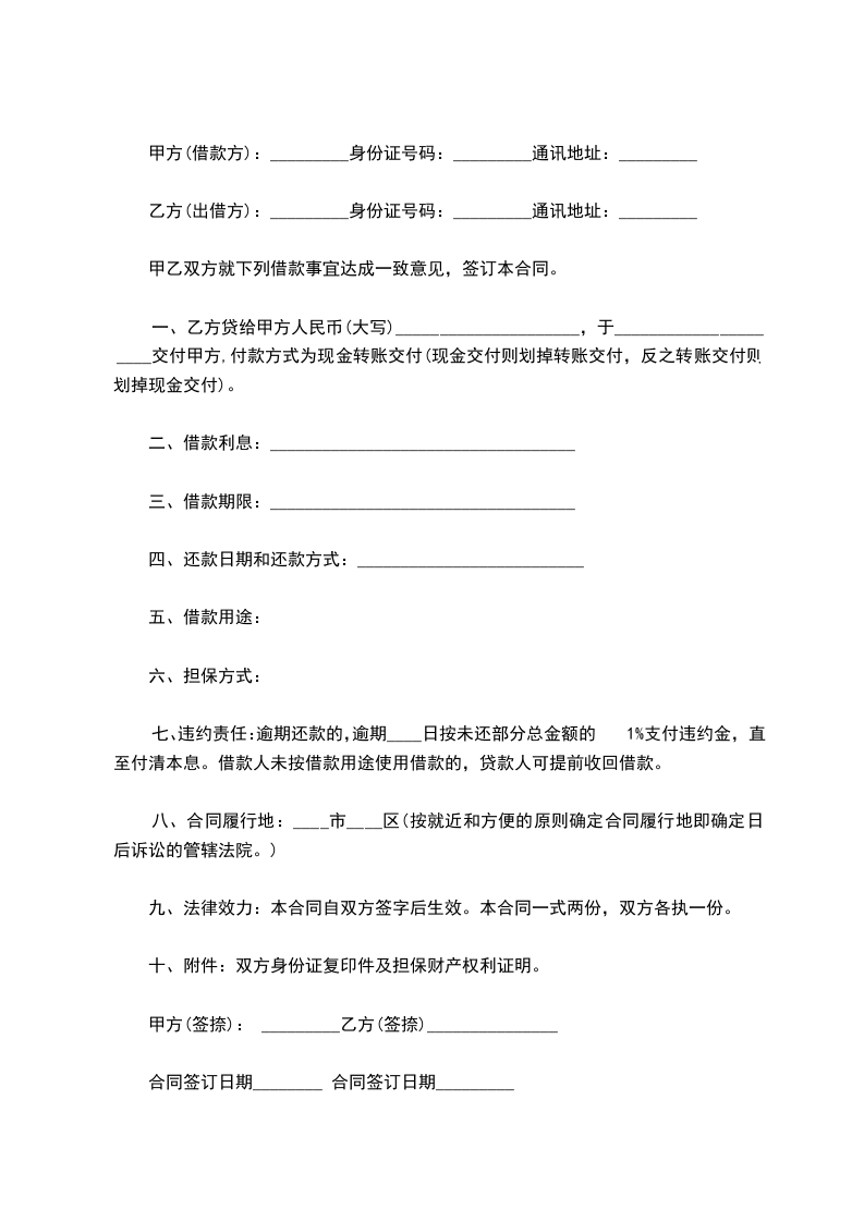 乙方(出借方):_________身份证号码:_________通讯地址:_________