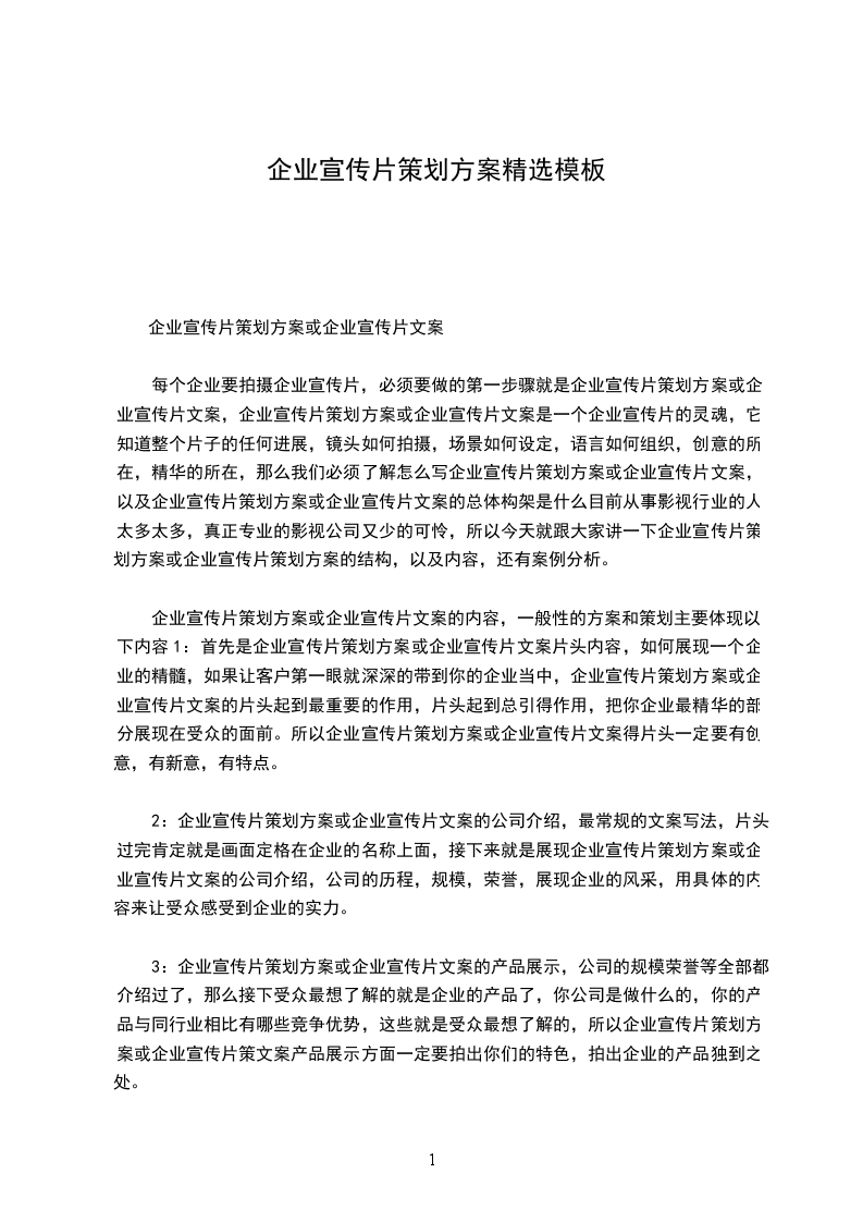 企业宣传片策划方案或企业宣传片文案