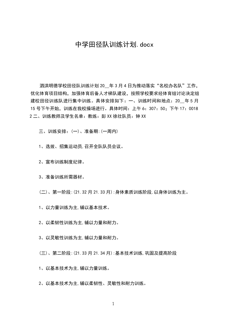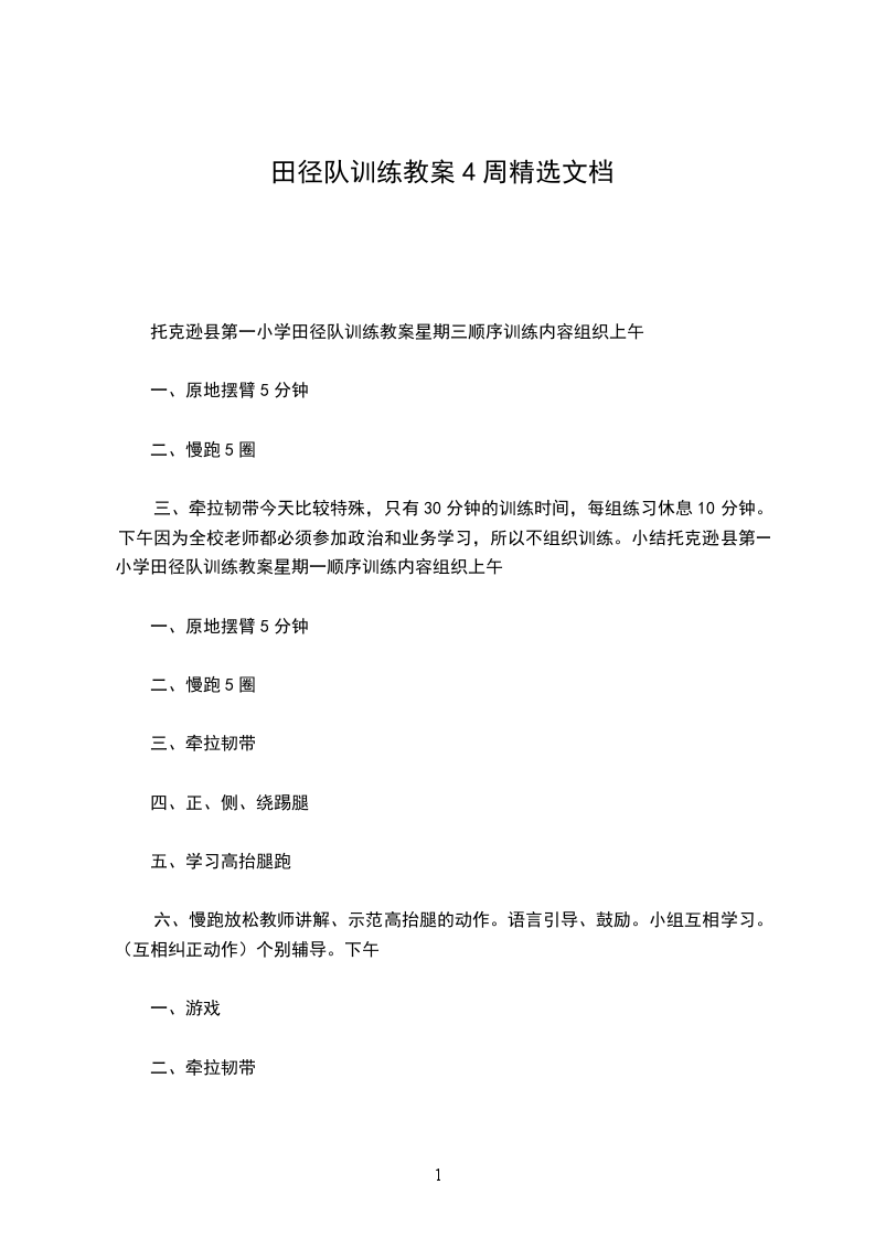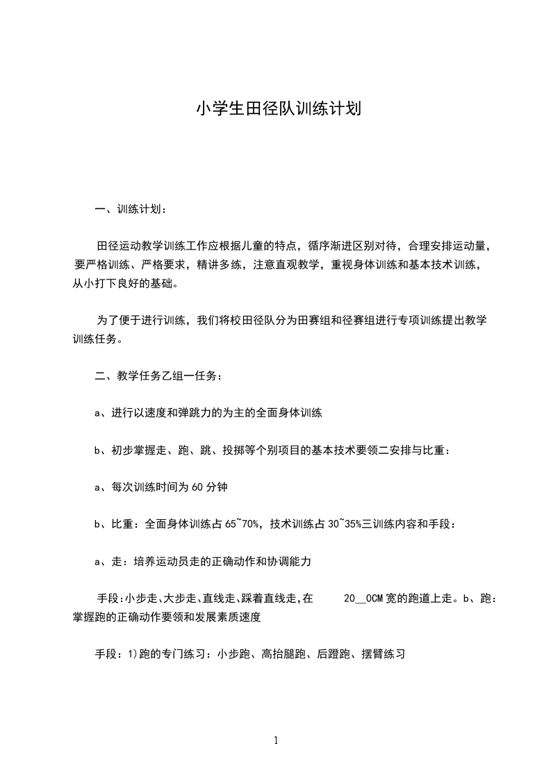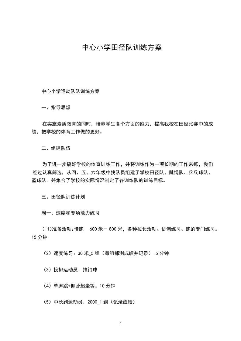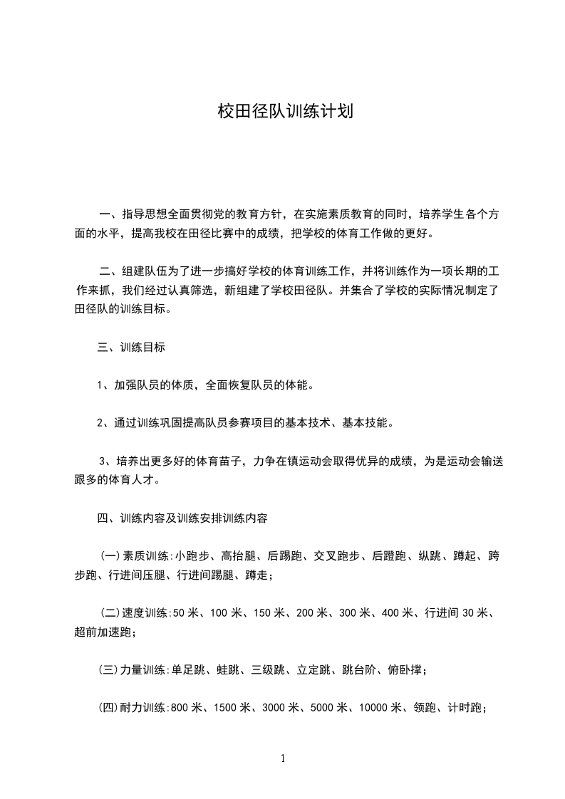 古北口中学学校田径队周训练计划