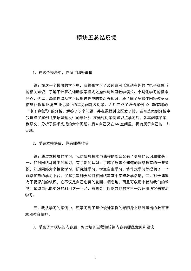 答:但本模块涉及的内容太多,需要掌握的理论多,需完成的作业也多,作为一线教师,都是抽时间学习,有时还受网络、电脑、学校工作等多方面原因的影响,所以觉得很紧张。希望以后多安排一点学习时间,争取学的更好。