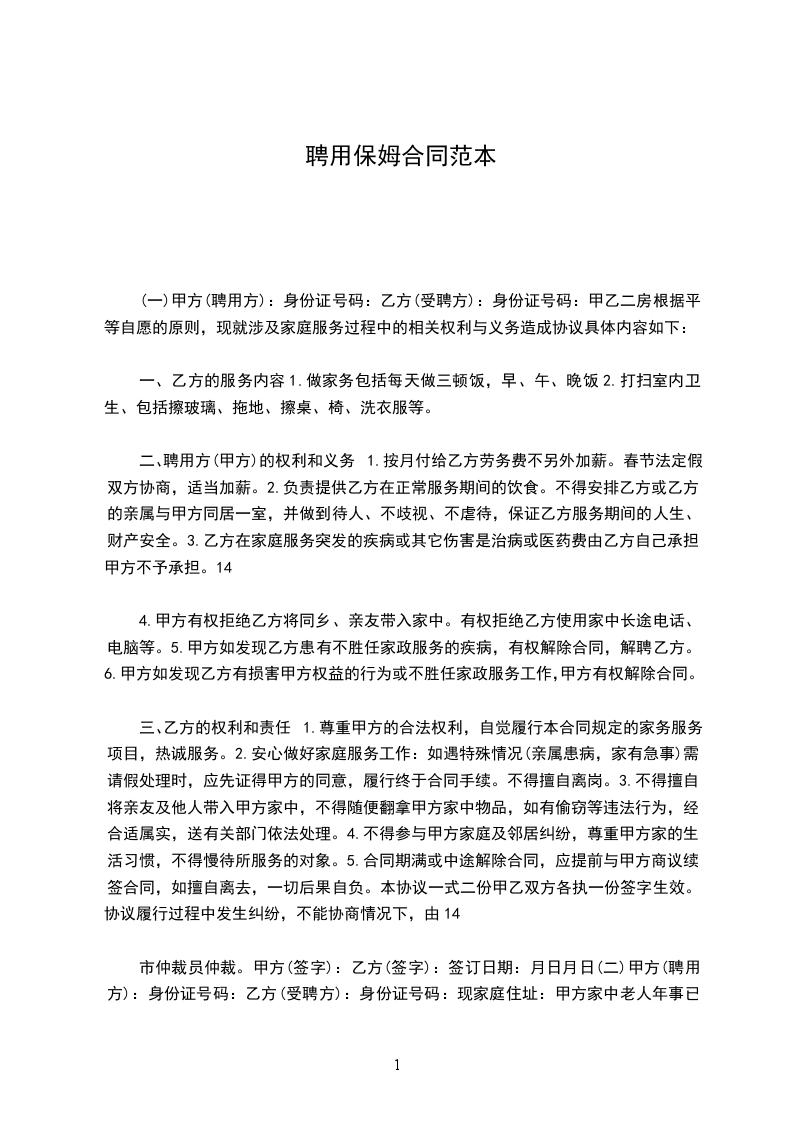 6、不得参与甲方家庭及邻纠纷,尊重甲方家的生活习惯,不得虐待所服务对象。