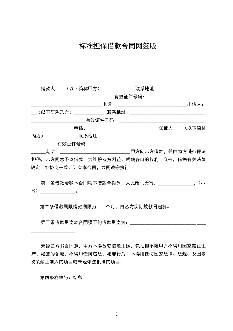 第四条 贷款利率 贷款利率按签订本合同时公布的利率确定年利率为___%(月利率___%)。在借款期限内利率变更,按中国人民银行规定办理。