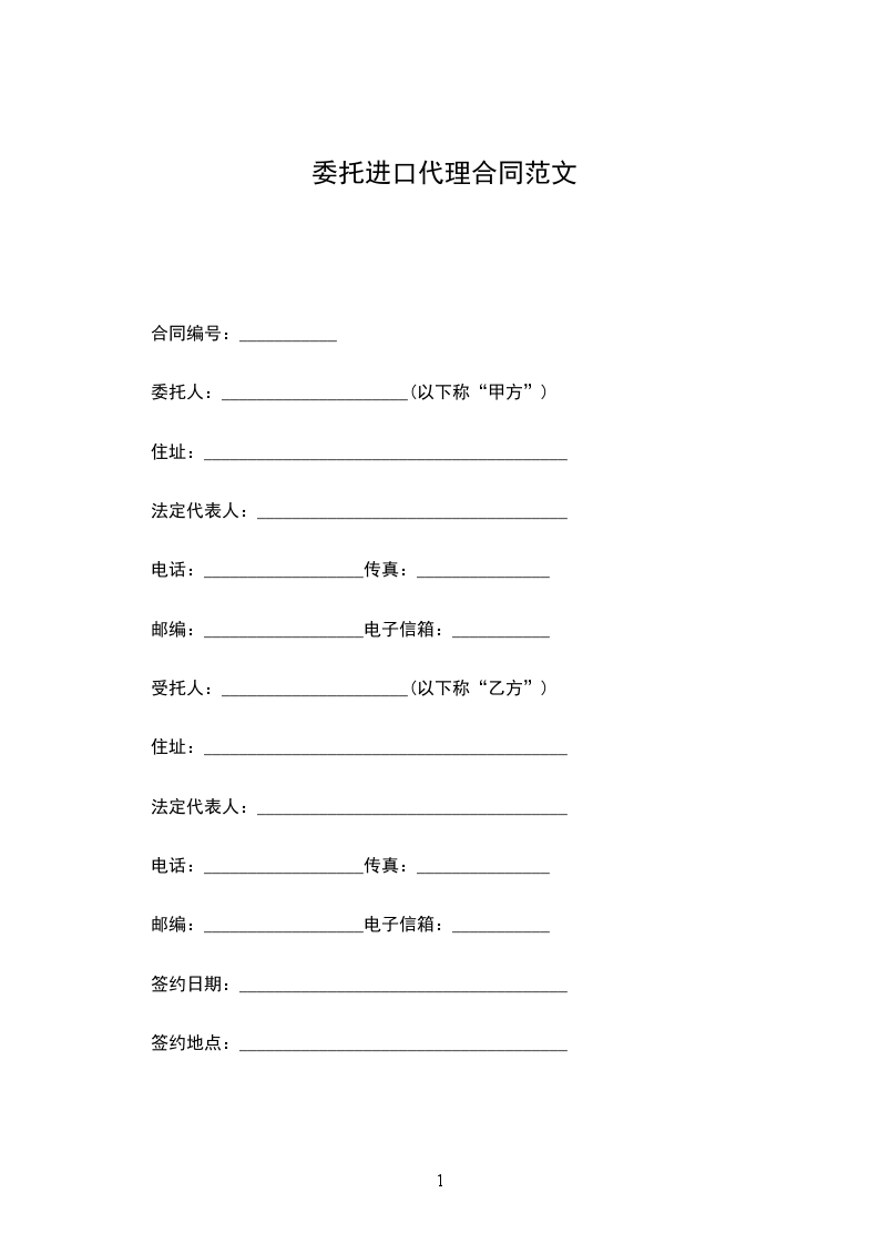 1.甲方委托乙方以乙方名义与_________________以下称“外商”签订进口合同(以下称“进口合同”),向其购买上述货物。