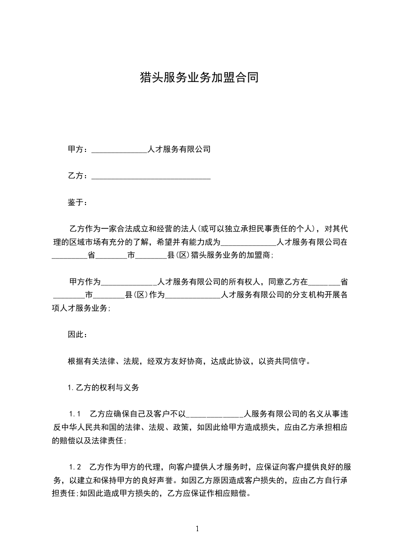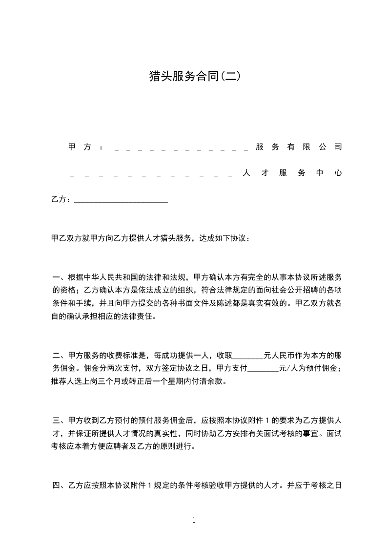十、本协议在乙方委托寻猎的人数超过一人时,对每一个人才的服务分别有效,彼此无法律上的连带责任关系。