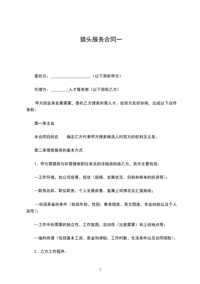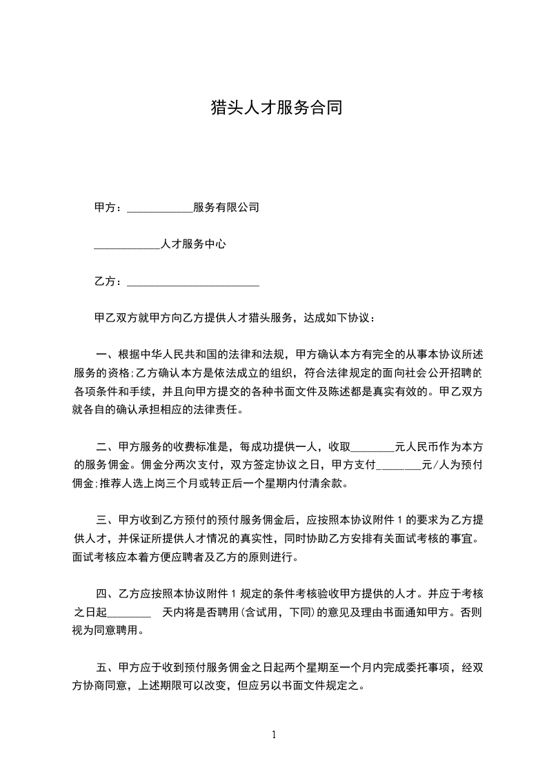 甲乙双方就甲方向乙方提供人才猎头服务,达成如下协议:
