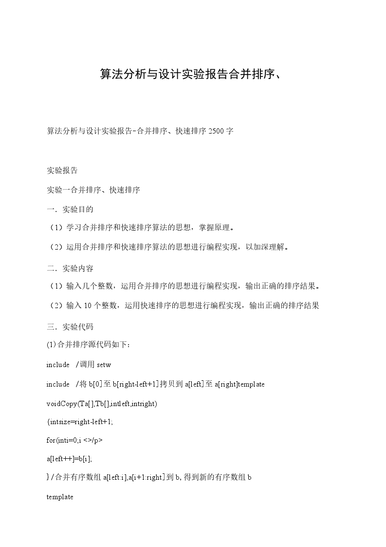 实验一合并排序、快速排序