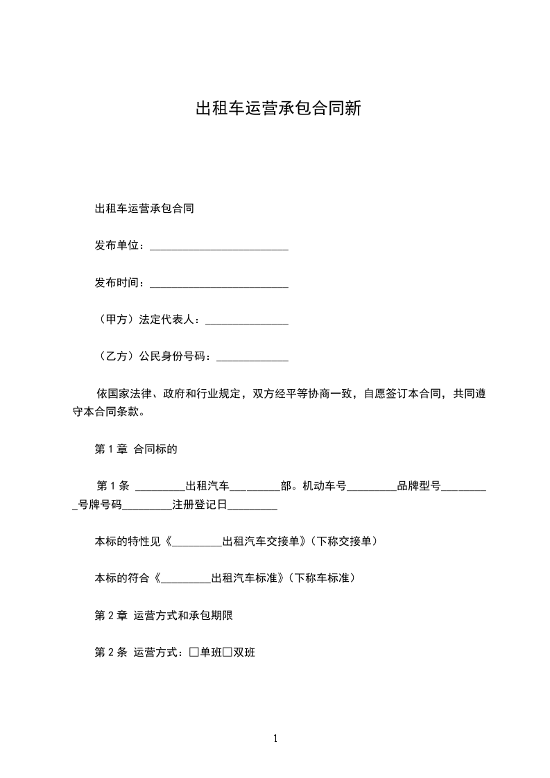 第18条 本合同变更,双方签订本合同附件1《_________出租汽车驾驶员运营任务承包合同变更/续订书》(下称运营变更/续订书)。