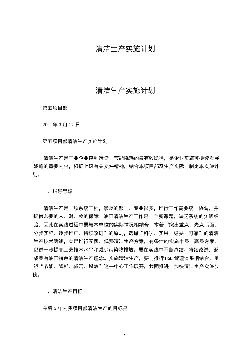 清洁生产是工业企业控制污染、节能降耗的最有效途径,是企业实施可持续发展战略的重要内容,根据上级有关文件精神,结合本项目部及生产实际,制定本实施计划。