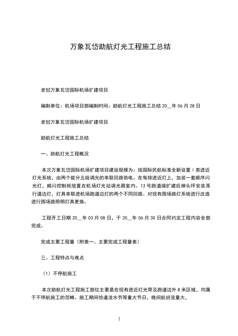 编制单位:机场项目部编制时间:助航灯光工程施工总结20__年06月28日