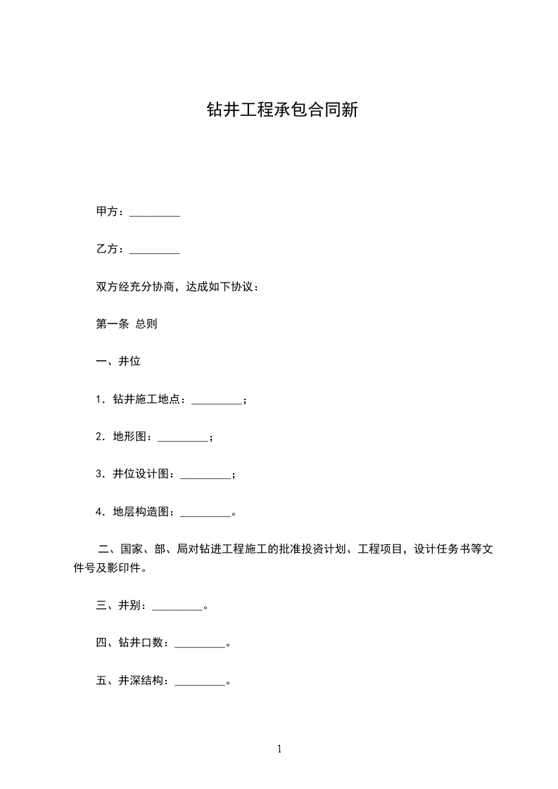 四、钻井是隐蔽工程,乙方在施工中必须按标准操作,做好每一道工序的记录,接受甲方的监督、检查、验收。