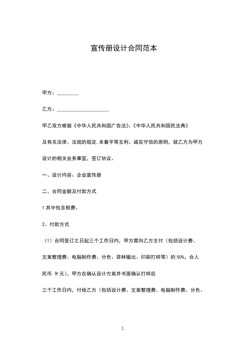 菲林输出、印刷打样等)50%+印刷制作费的60%,合人民币(¥元),甲方在收到全部成品且通过验收合格单后三个工作日内
