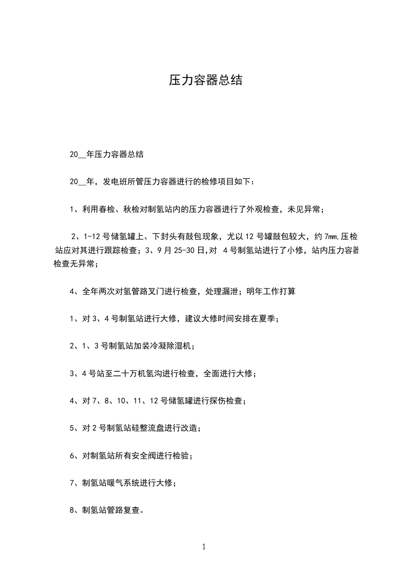 2、1-12号储氢罐上、下封头有鼓包现象,尤以12号罐鼓包较大,约7mm,压检站应对其进行跟踪检查;3、9月25-30日,对4号制氢站进行了小修,站内压力容器检查无异常;