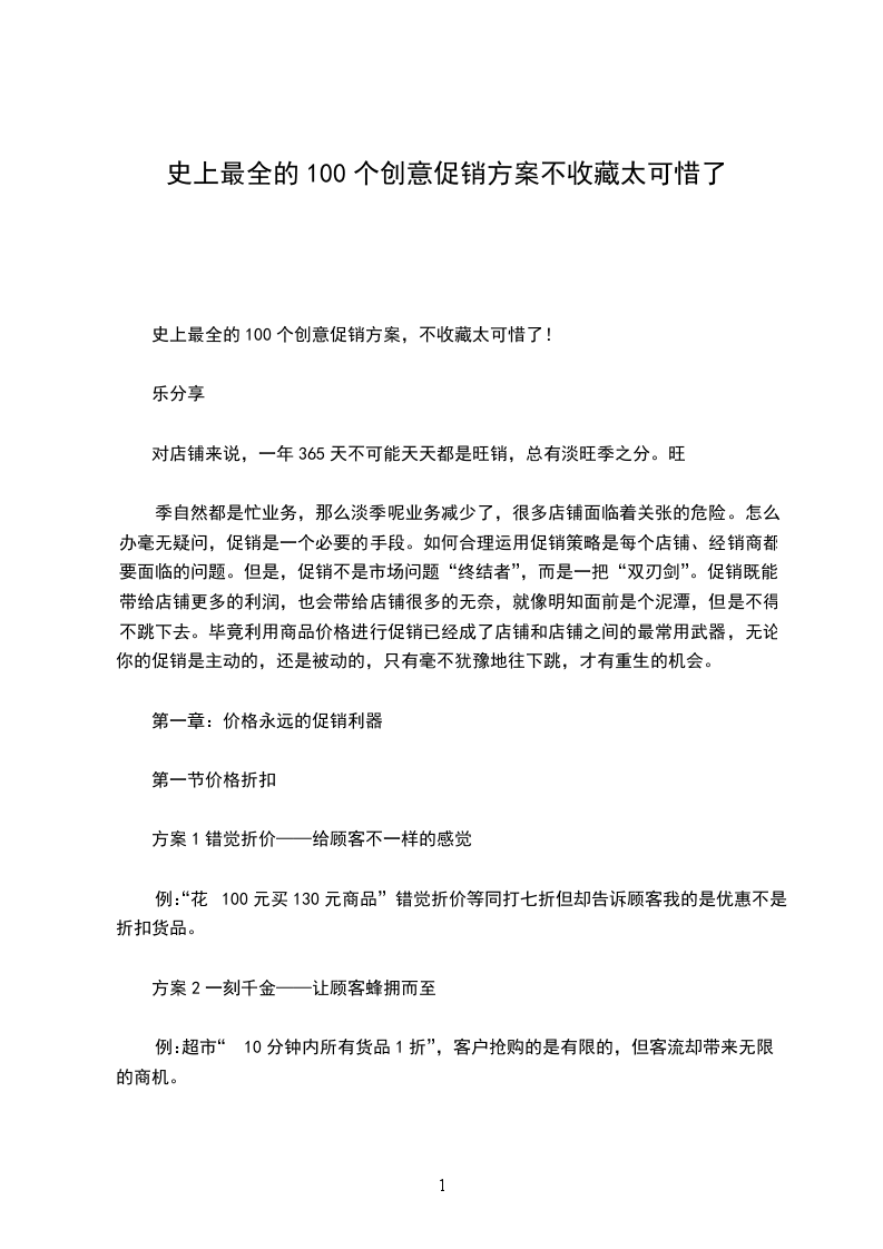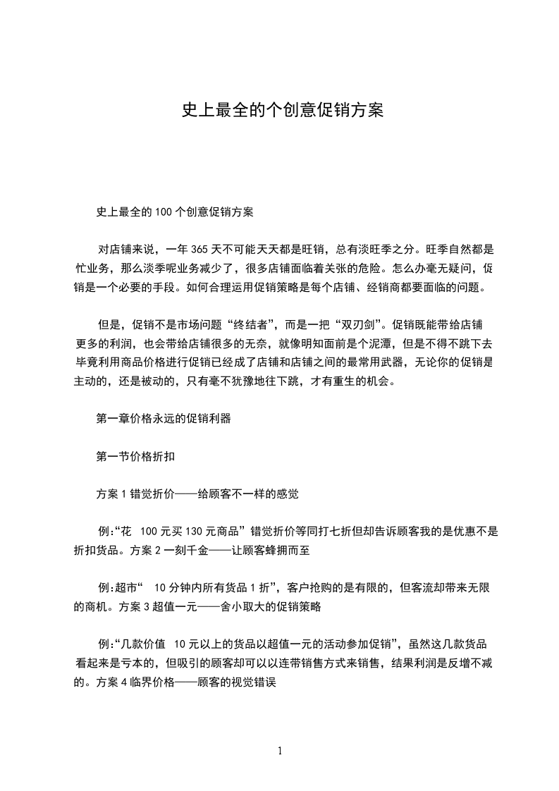 例:超市“10分钟内所有货品1折”,客户抢购的是有限的,但客流却带来无限的商机。方案3超值一元——舍小取大的促销策略