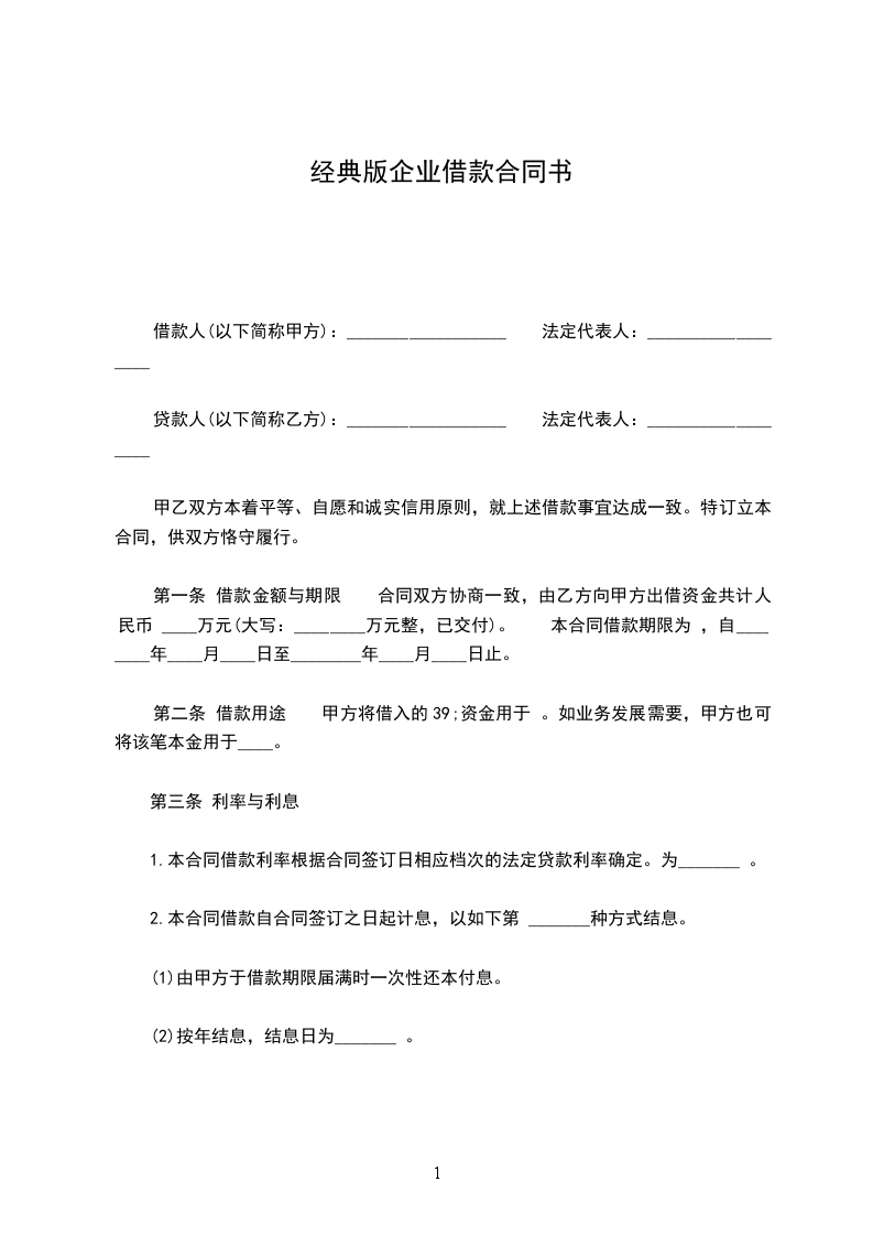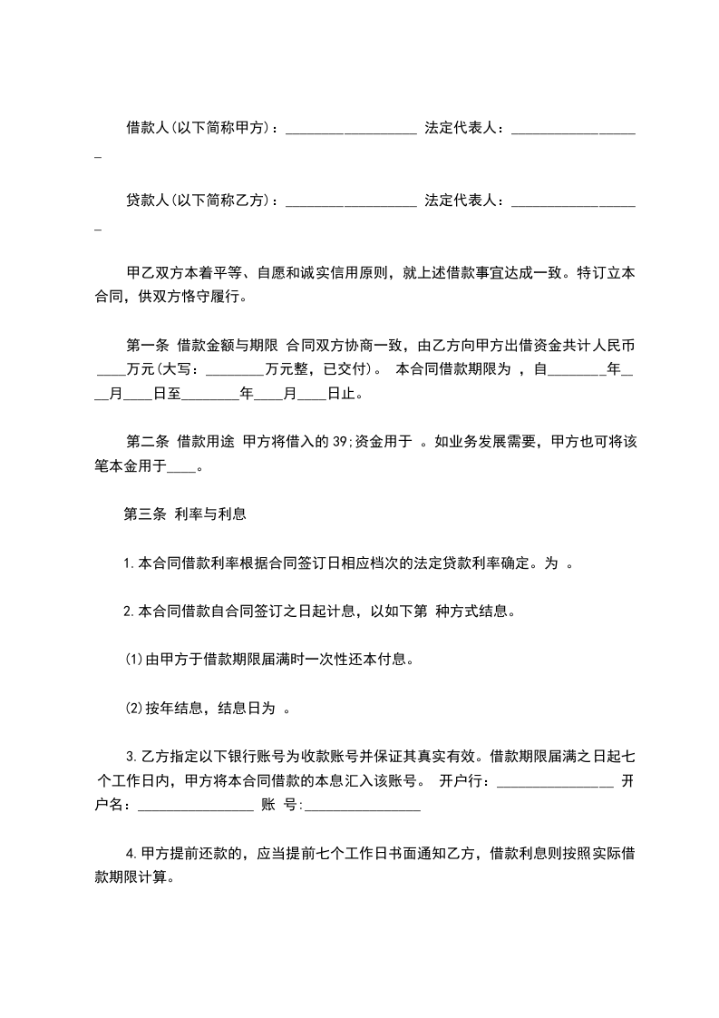 第四条 借款利率:本期贷款年利率为_____________%,乙方按季计收利息,如甲方不能按期付息,则转入贷款本金计收复息。在合同履行期间,如遇国家调整利率或变更计息办法,按国家规定执行。