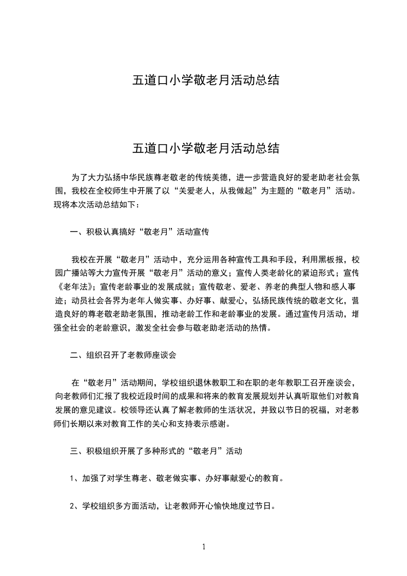 五道口小学敬老月活动总结