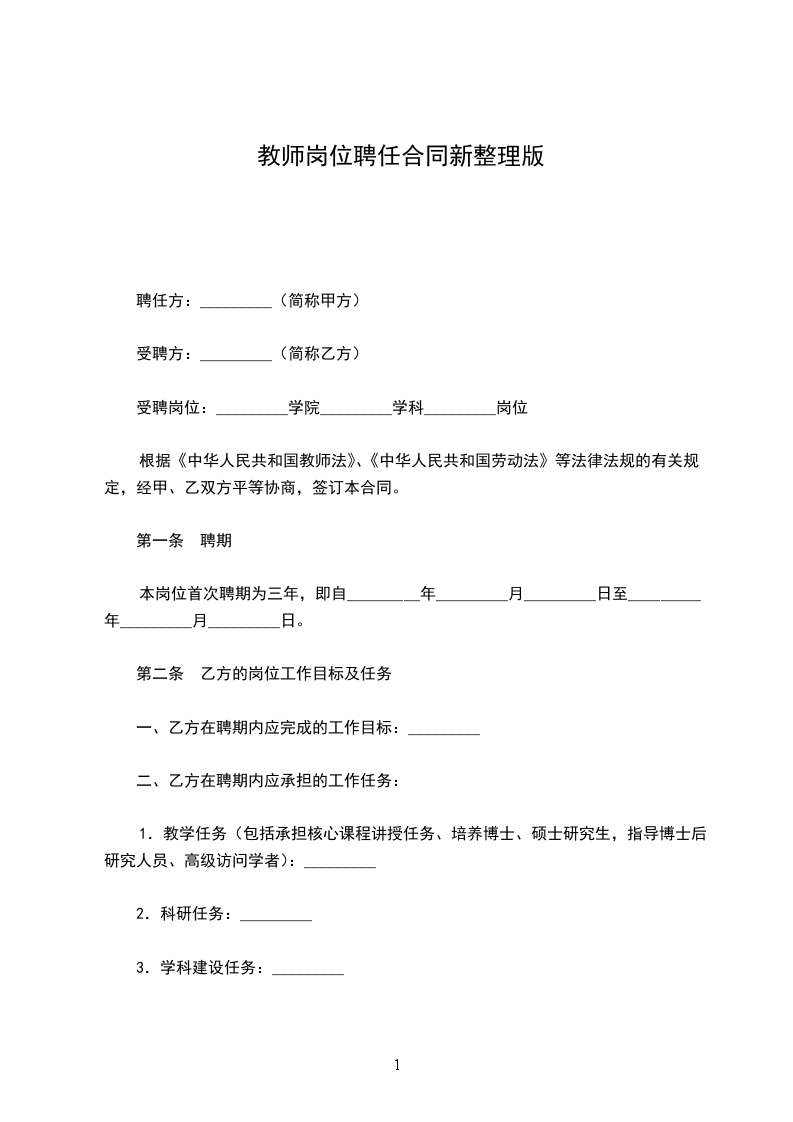 根据《中华人民共和国教师法》、《中华人民共和国劳动法》等法律法规的有关规定,经甲、乙双方平等协商,签订本合同。