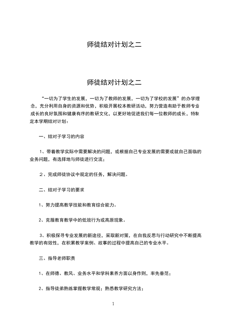 本学年的师徒结对活动中,我拜高老师为师傅。现制定师徒结对计划如下。