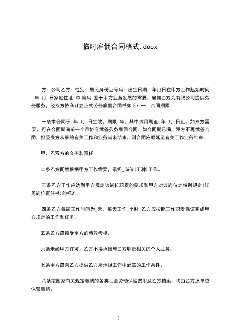 一、劳动合同期限 (一)本合同为有固定期限的劳动合同。合同期从________年____月____日起至________年____月____日止。