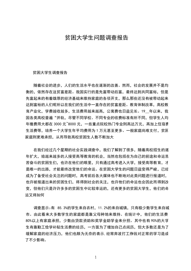 贫困大学生调查报告
