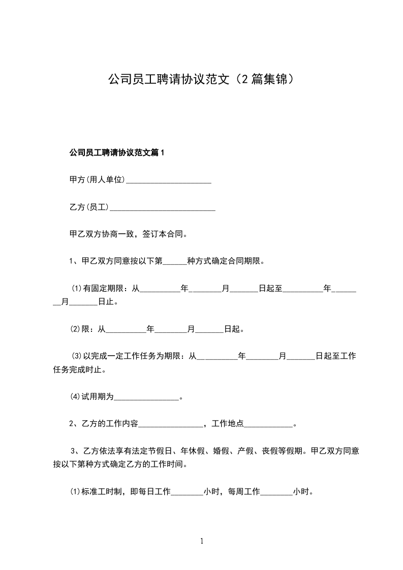 公司员工聘请协议范文篇2