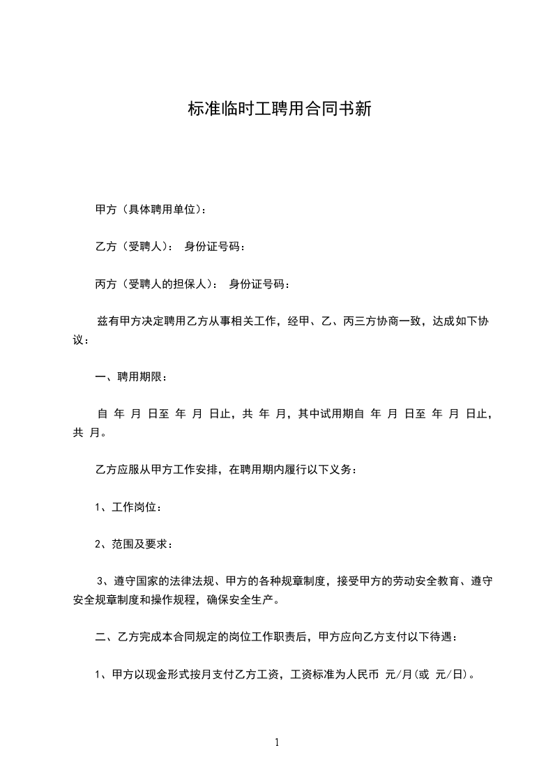 1、甲方以现金形式按月支付乙方工资,工资标准为人民币 元/月(或 元/日)。
