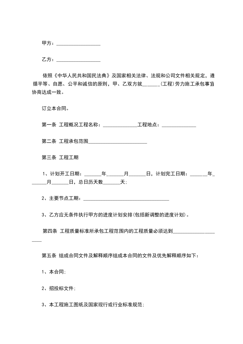第二条 合同工期