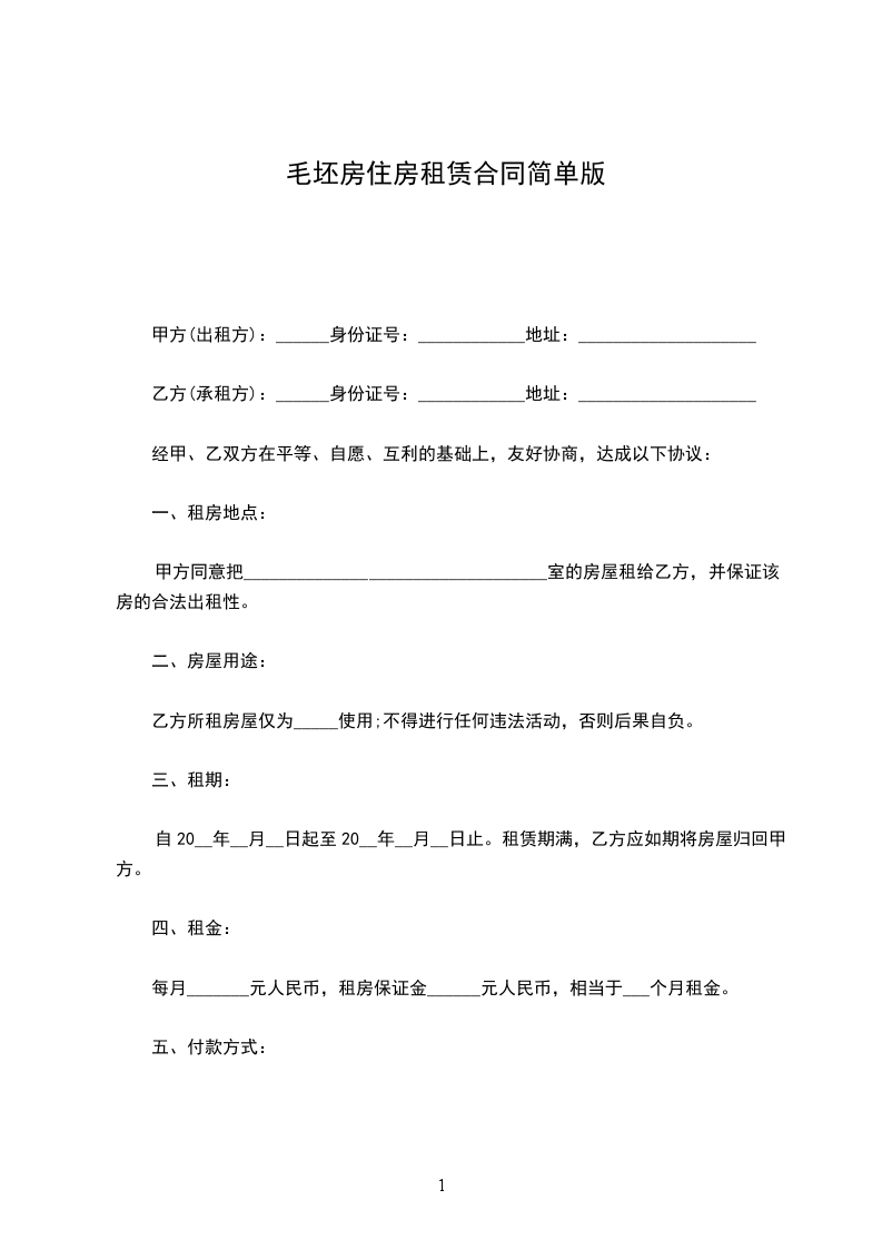 一、租期暂定年。即从_____年_____月_____日至_____年_____月_____日止。先付后住。