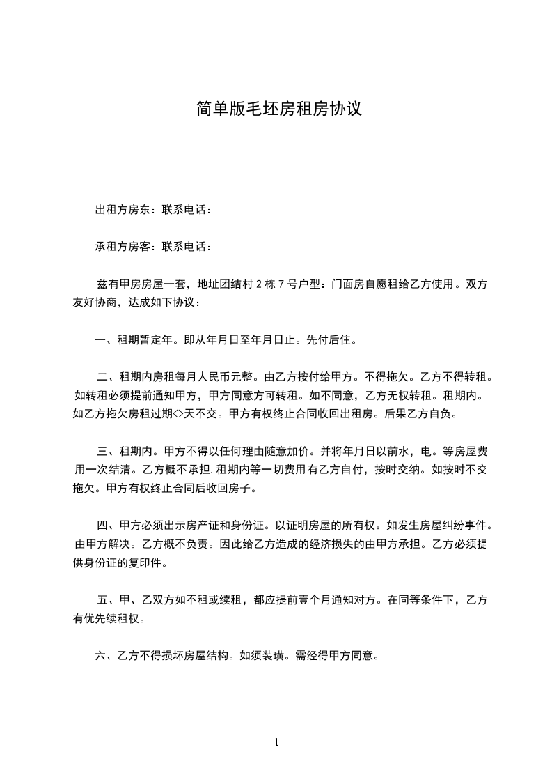 兹有甲房房屋一套,地址团结村2栋7号户型:门面房自愿租给乙方使用。双方友好协商,达成如下协议: