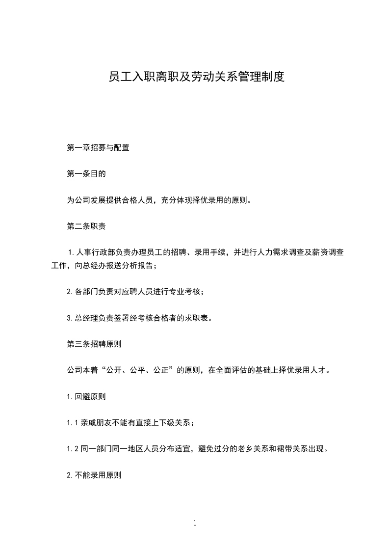 第一条劳动合同管理规定
