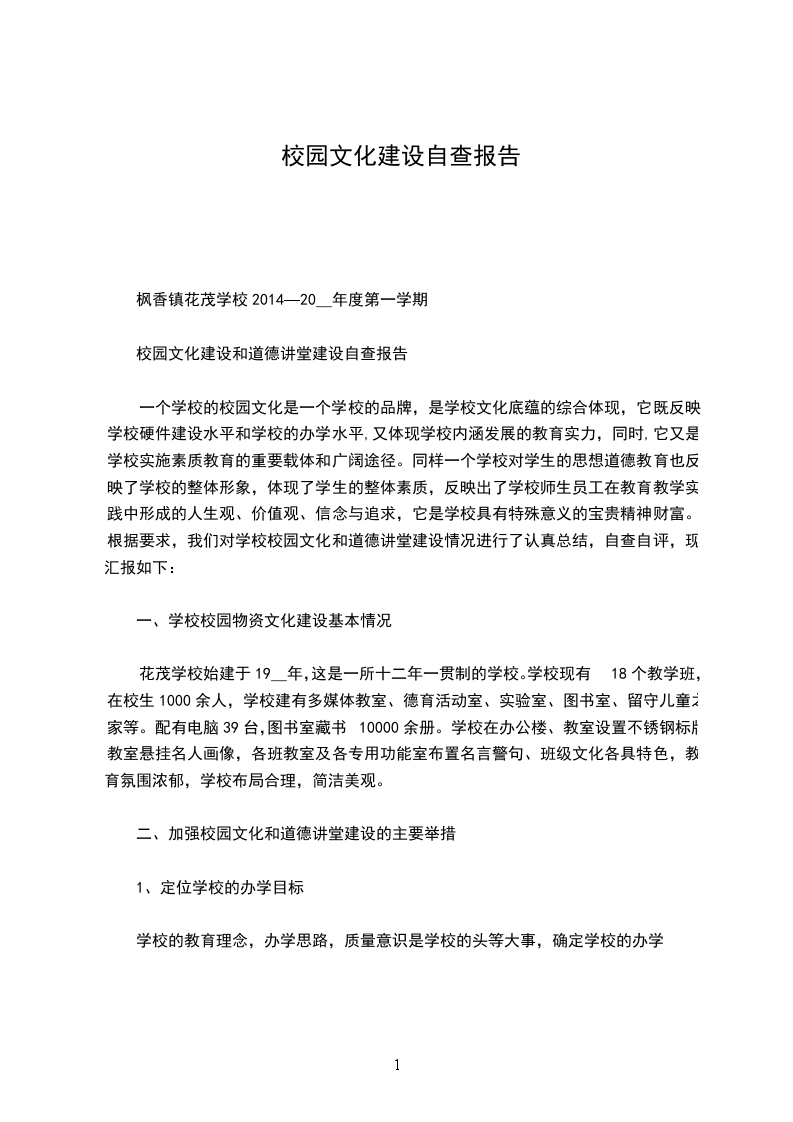 一个学校的校园文化是一个学校的品牌,是学校文化底蕴的综合体现,它既反映学校硬件建设水平和学校的办学水平,又体现学校内涵发展的教育实力,同时,它又是学校实施素质教育的重要载体和广阔途径。同样一个学校对学生的思想道德教育也反映了学校的整体形象,体现了学生的整体素质,反映出了学校师生员工在教育教学实践中形成的人生观、价值观、信念与追求,它是学校具有特殊意义的宝贵精神财富。根据要求,我们对学校校园文化和道德讲堂建设情况进行了认真总结,自查自评,现汇报如下: