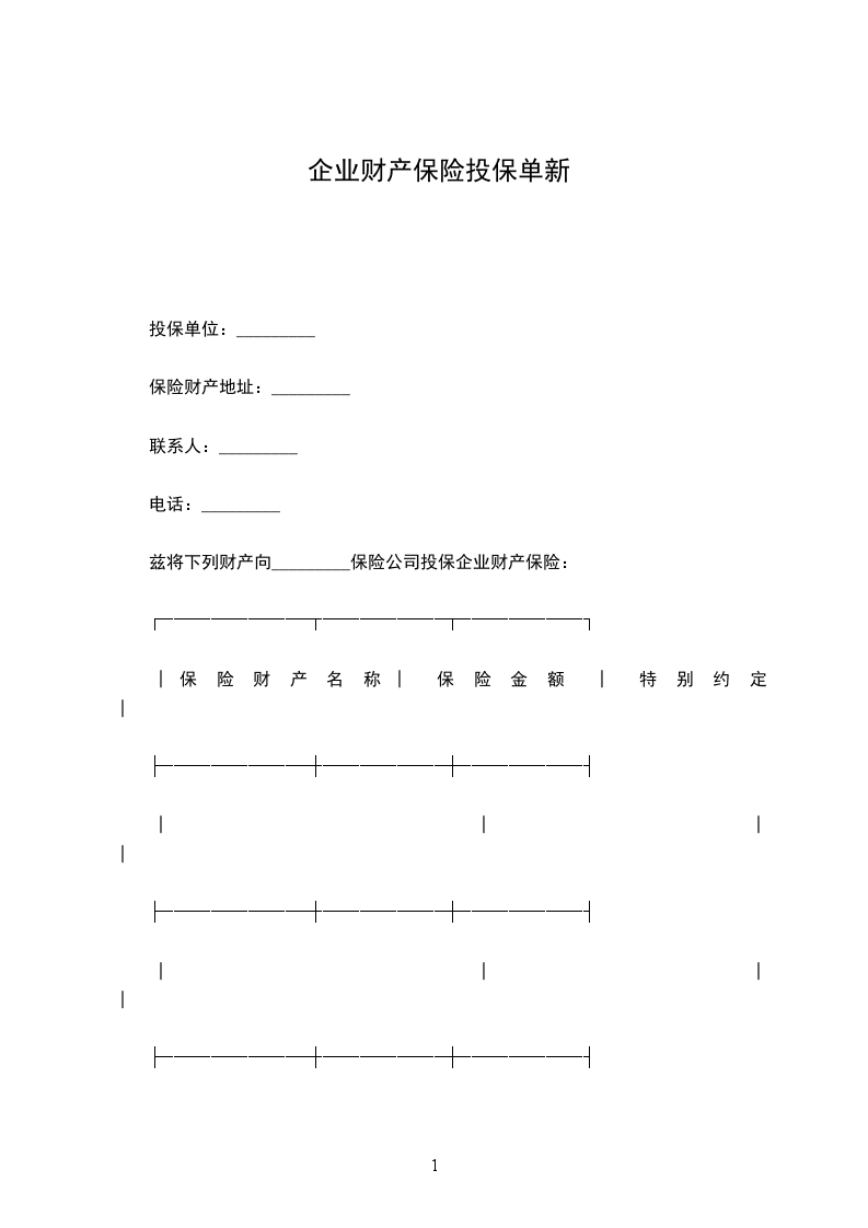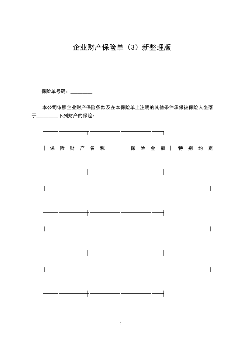 本公司依照企业财产保险条款及在本保险单上注明的其他条件承保被保险人坐落于_________下列财产的保险:
