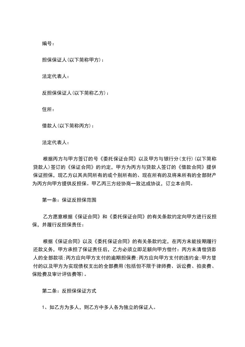 对于本合同项下的乙方所有义务和责任由乙方或第三人以连带责任保证/质押/抵押等方式向甲方提供反担保,反担保合同由甲方与反担保方另行签订。反担保合同与本合同不一致的,以反担保合同为准。