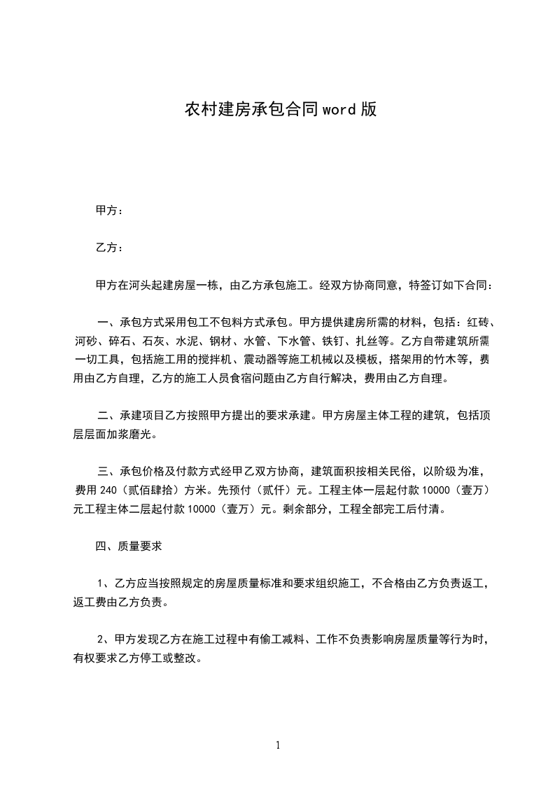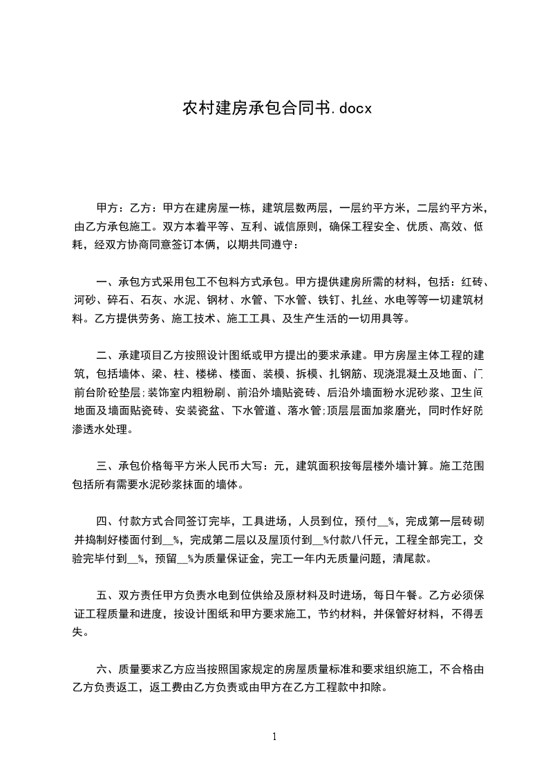 1、甲方根据约定向乙方支付价款,并根据乙方施工进度其提供建房所需的水泥、沙子、钢筋等建筑材料;
