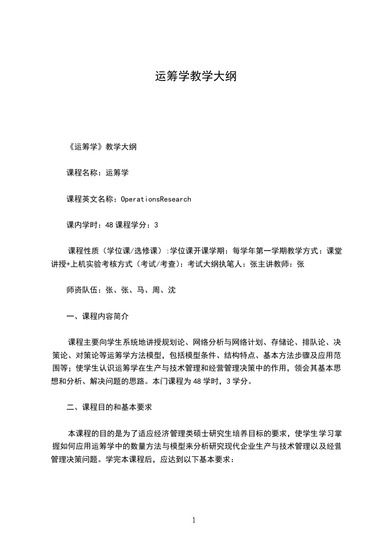 《运筹学》教学大纲