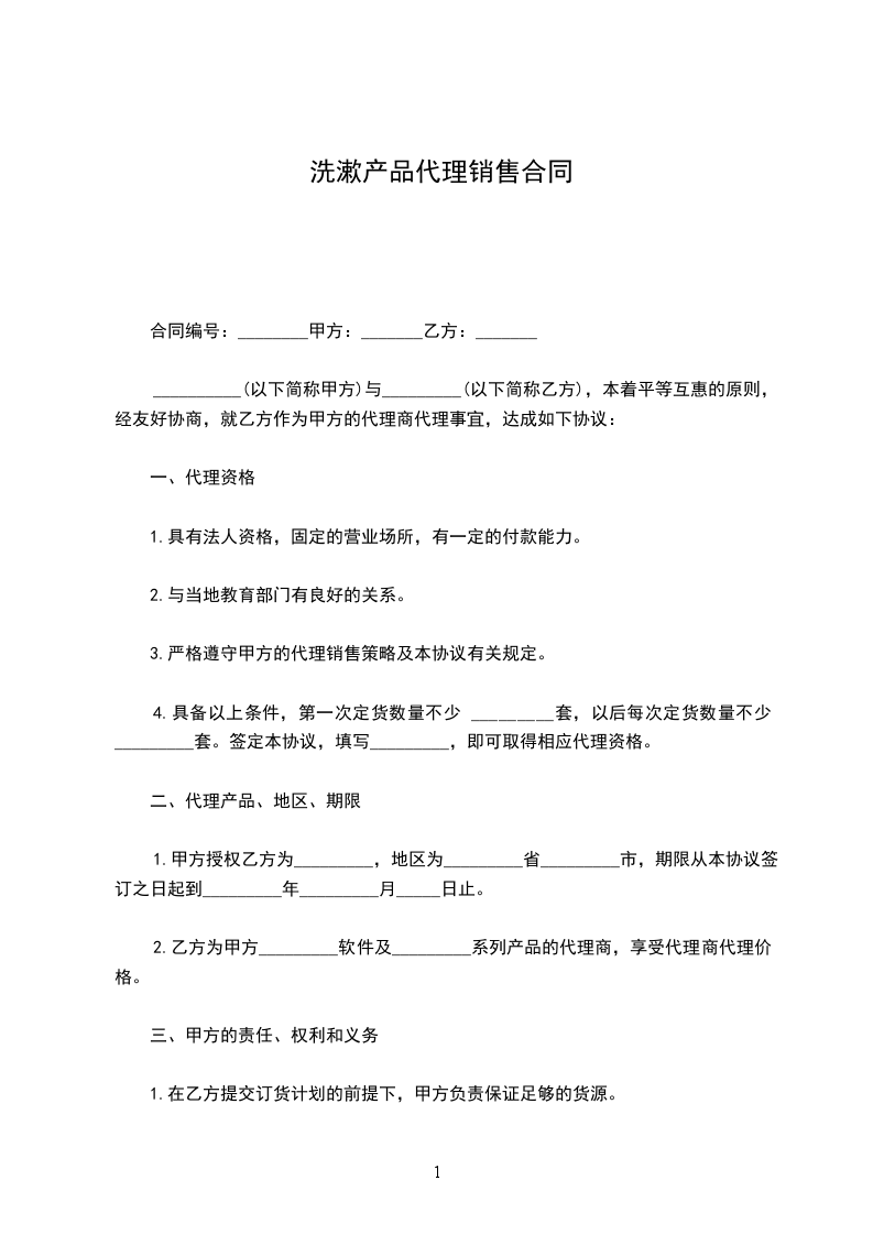 三、代理期限为1年,即自_____年____月______日起至_____年______月_______日止。合同期满前一个月如乙方能如期完成双方签定的销售任务年进货量26万元(含首批),双方另行续约。(特殊情况可双方协商解决!)