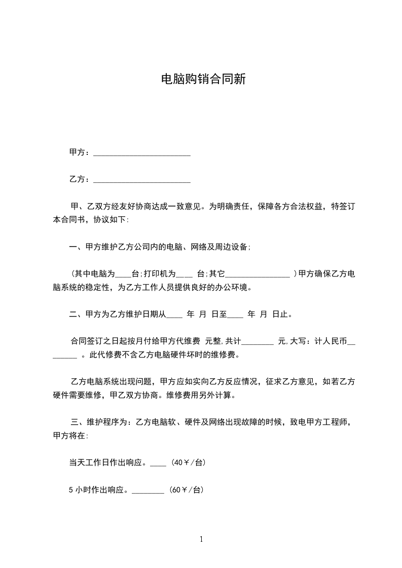 一、甲方维护乙方公司内的电脑、网络及周边设备;
