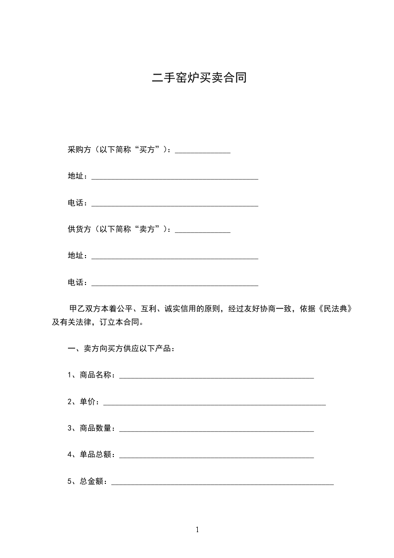 一、卖方向买方供应以下产品:
