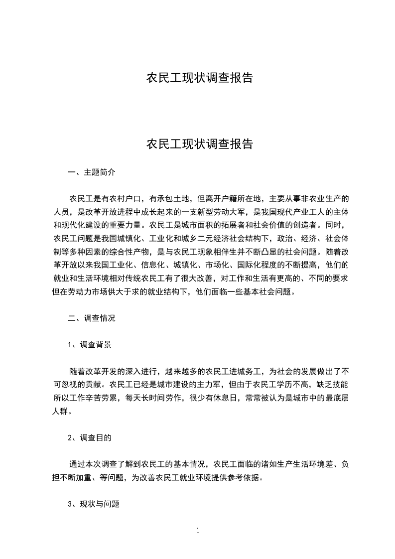 农民工现状调查报告