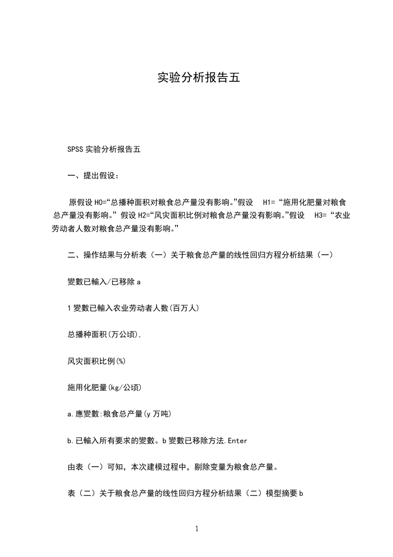 二、操作结果与分析表(一)关于粮食总产量的线性回归方程分析结果(一)