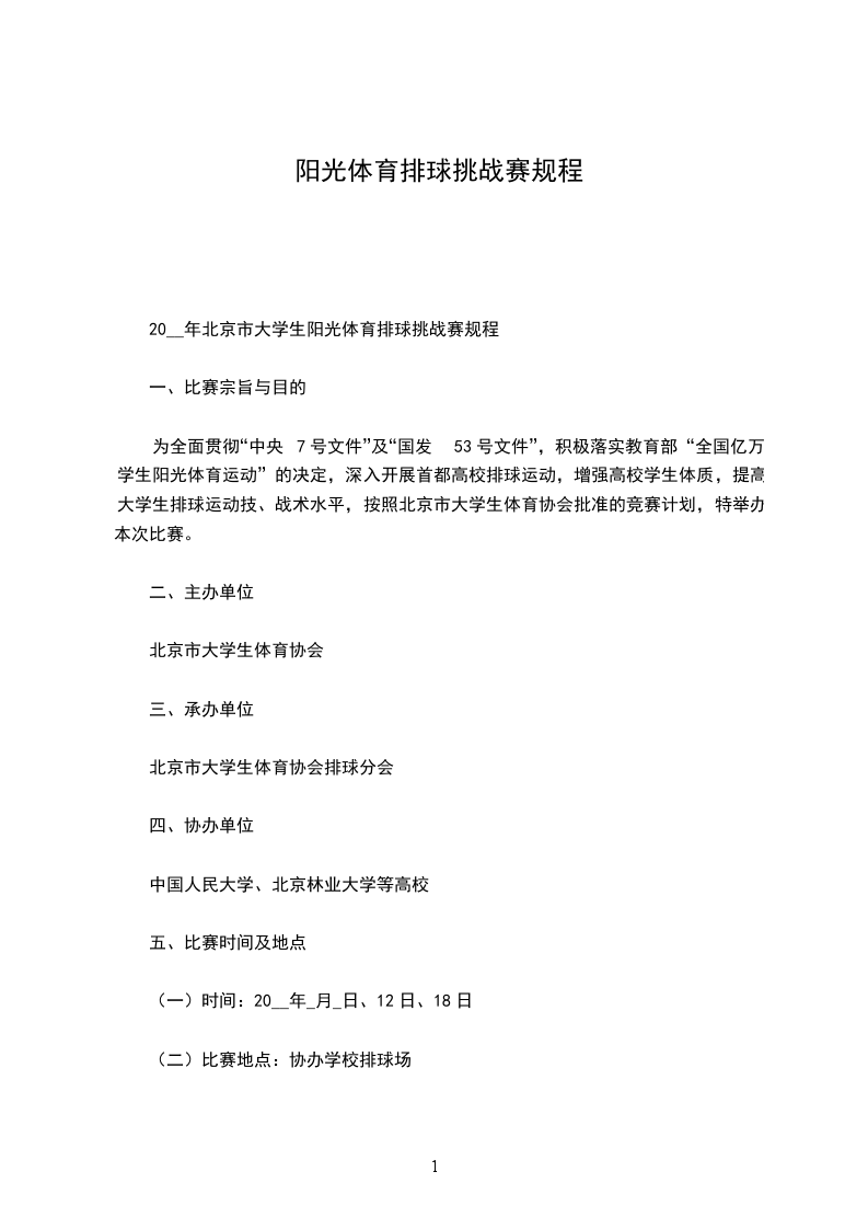 20__年北京市大学生阳光体育排球挑战赛规程