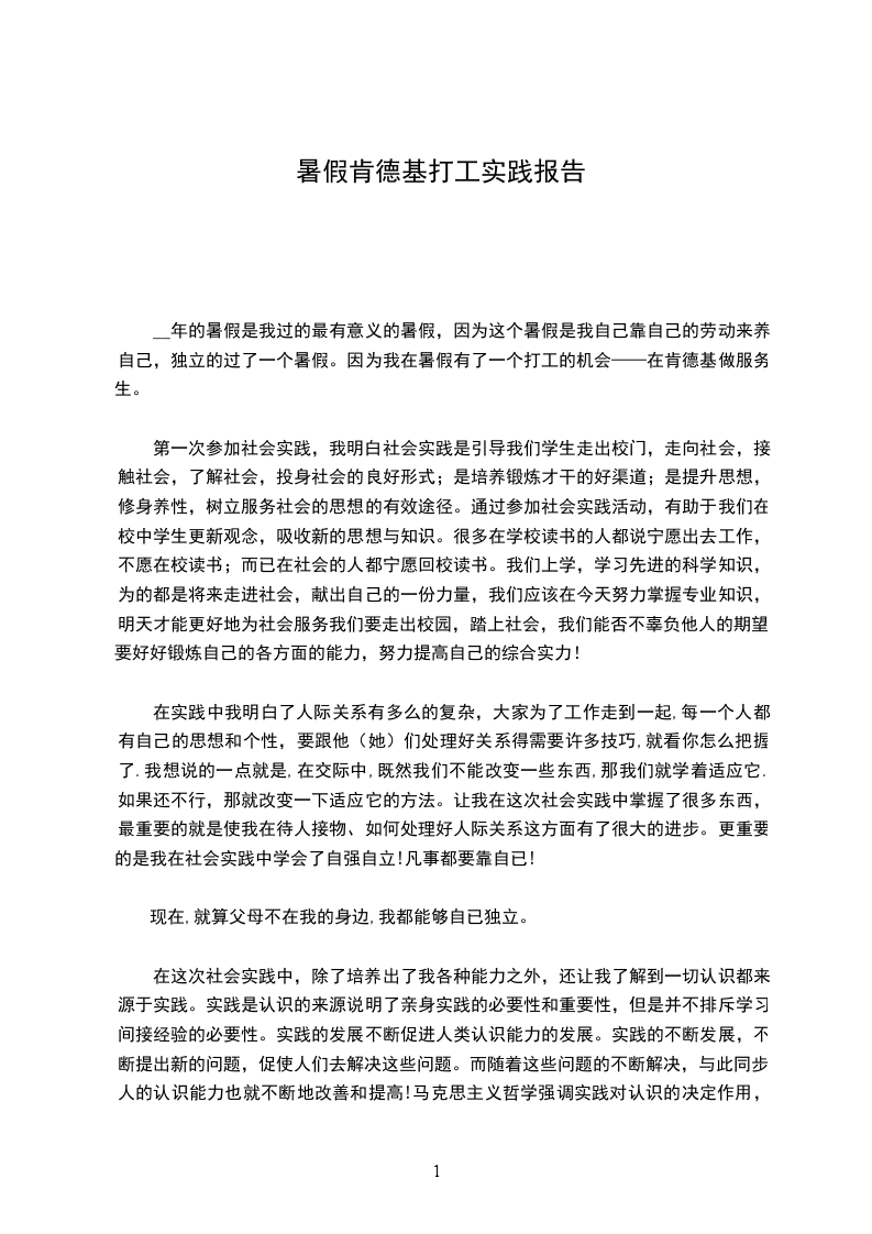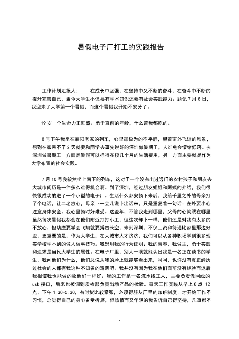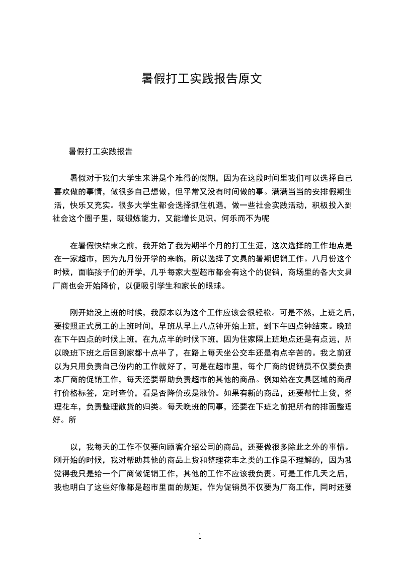 暑假打工实践报告