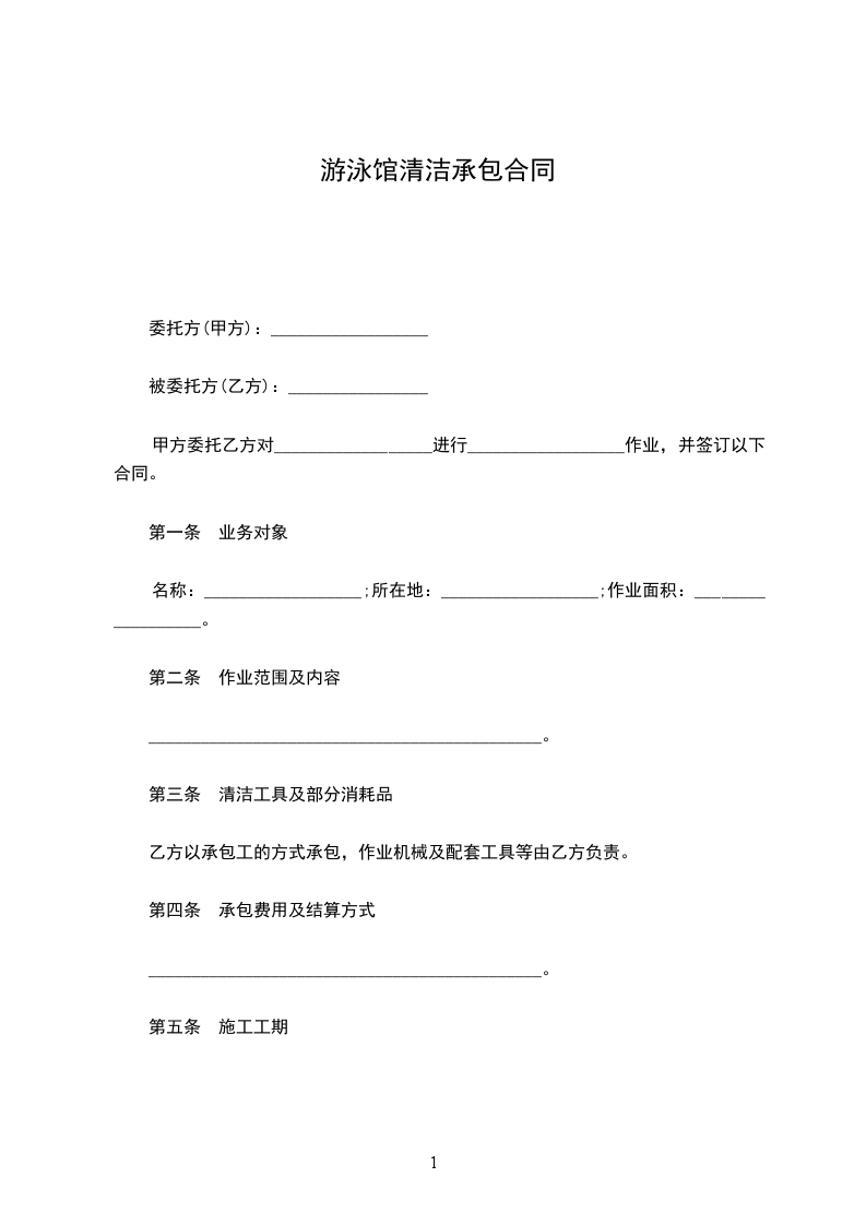 第二条 游泳馆的承包经营期限为年,自_______年_______月_______日起至_______年_______月_______日止,期满后在同等条件下乙方可以优先续签。