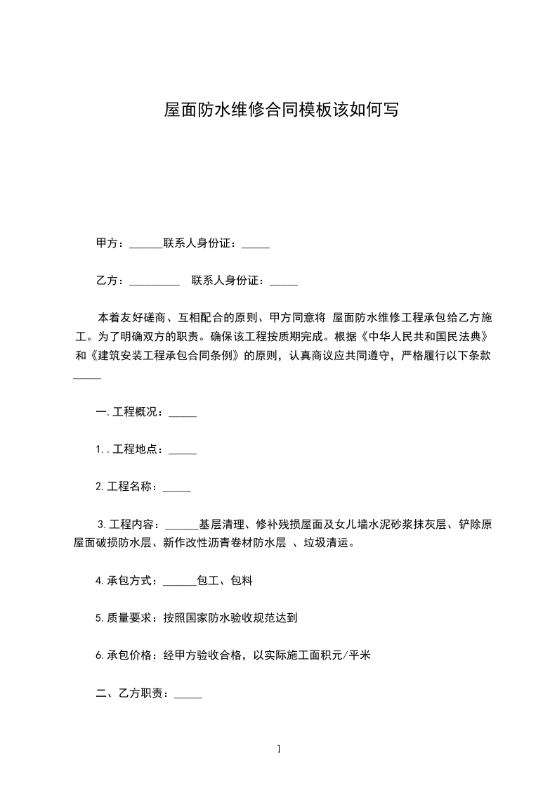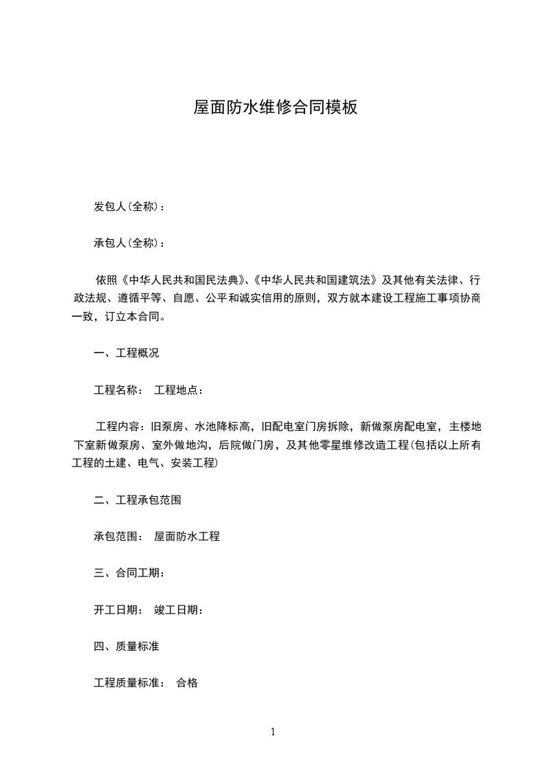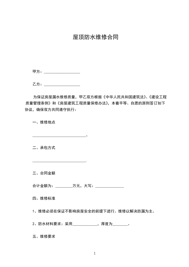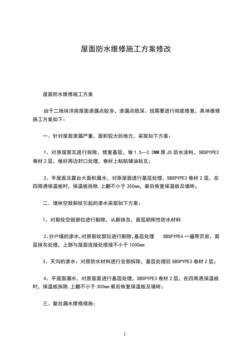 屋面防水维修施工方案