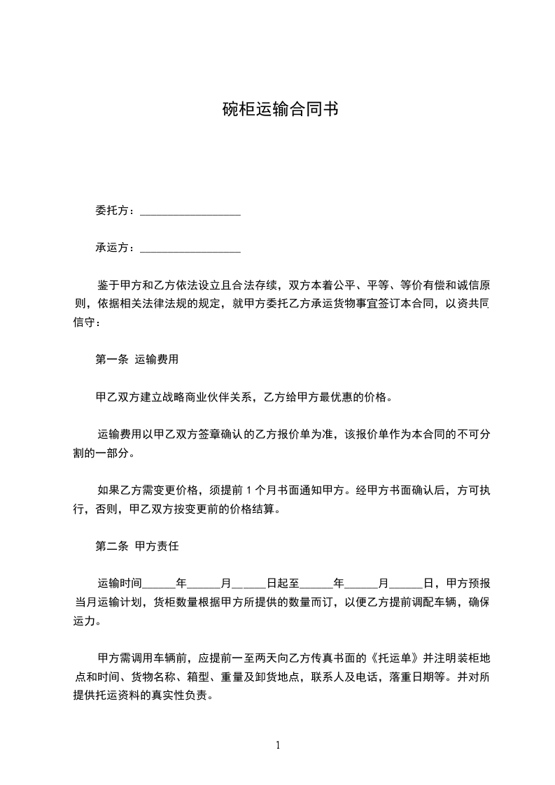 运输时间______年______月______日起至______年______月______日,甲方预报当月运输计划,货柜数量根据甲方所提供的数量而订,以便乙方提前调配车辆,确保运力。