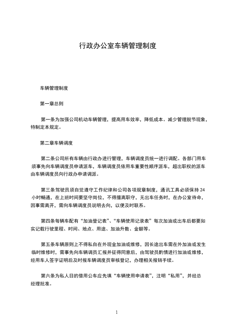 第二条公司所有车辆由行政办进行管理,车辆调度员统一进行调配。各部门用车须事先向车辆调度员申请派车,车辆调度员依用车重要性顺序派车,超出职权的派车,由车辆调度员向行政办申请调派。
