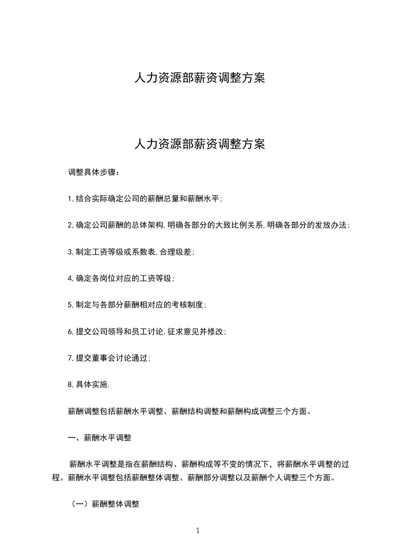 人力资源部薪资调整方案