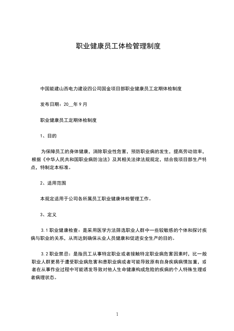 中国能建山西电力建设四公司国金项目部职业健康员工定期体检制度
