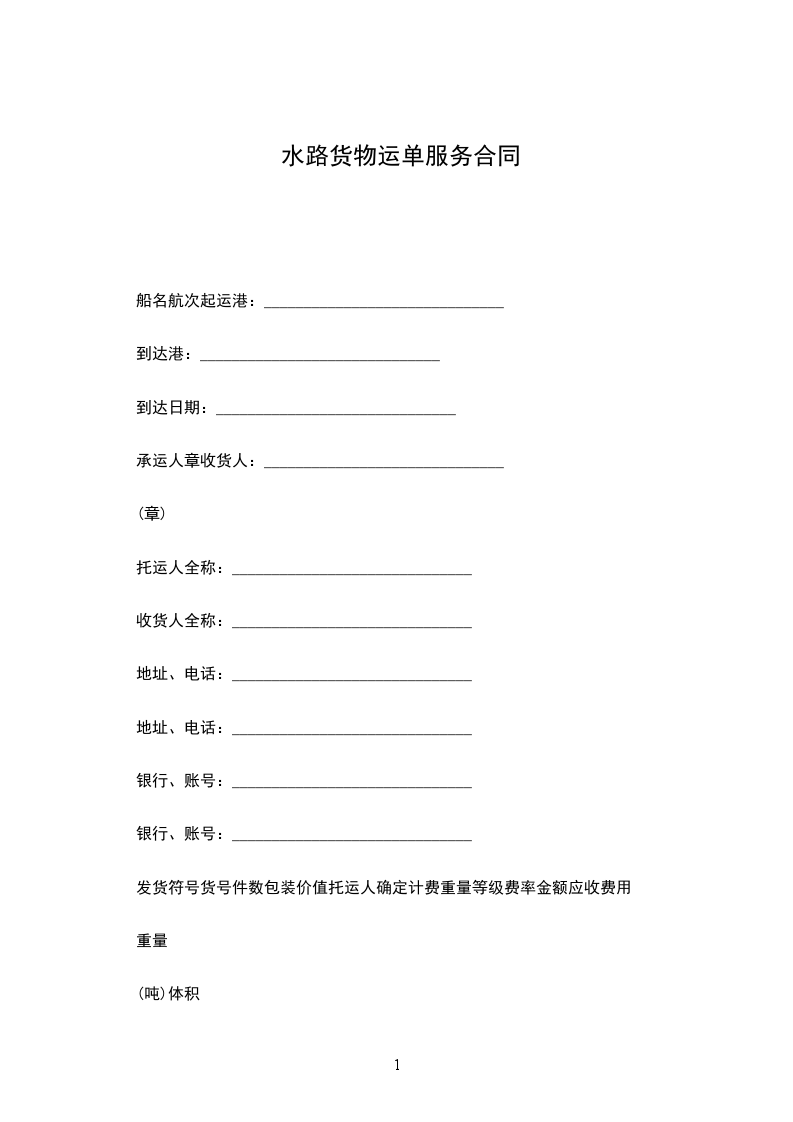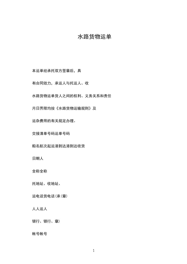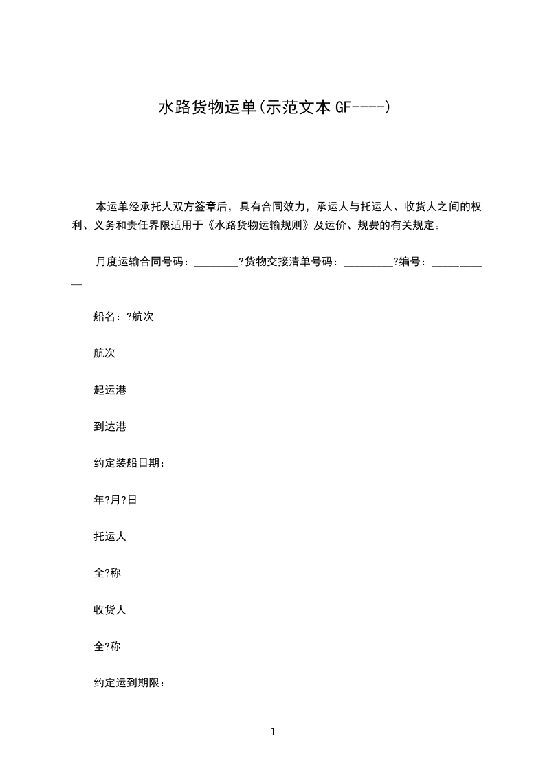 1.此货物运单主要适用于江、海干线和跨省运输的水路货物运输。