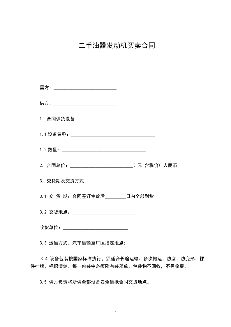 3.5 供方负责将所供全部设备安全运抵合同交货地点。