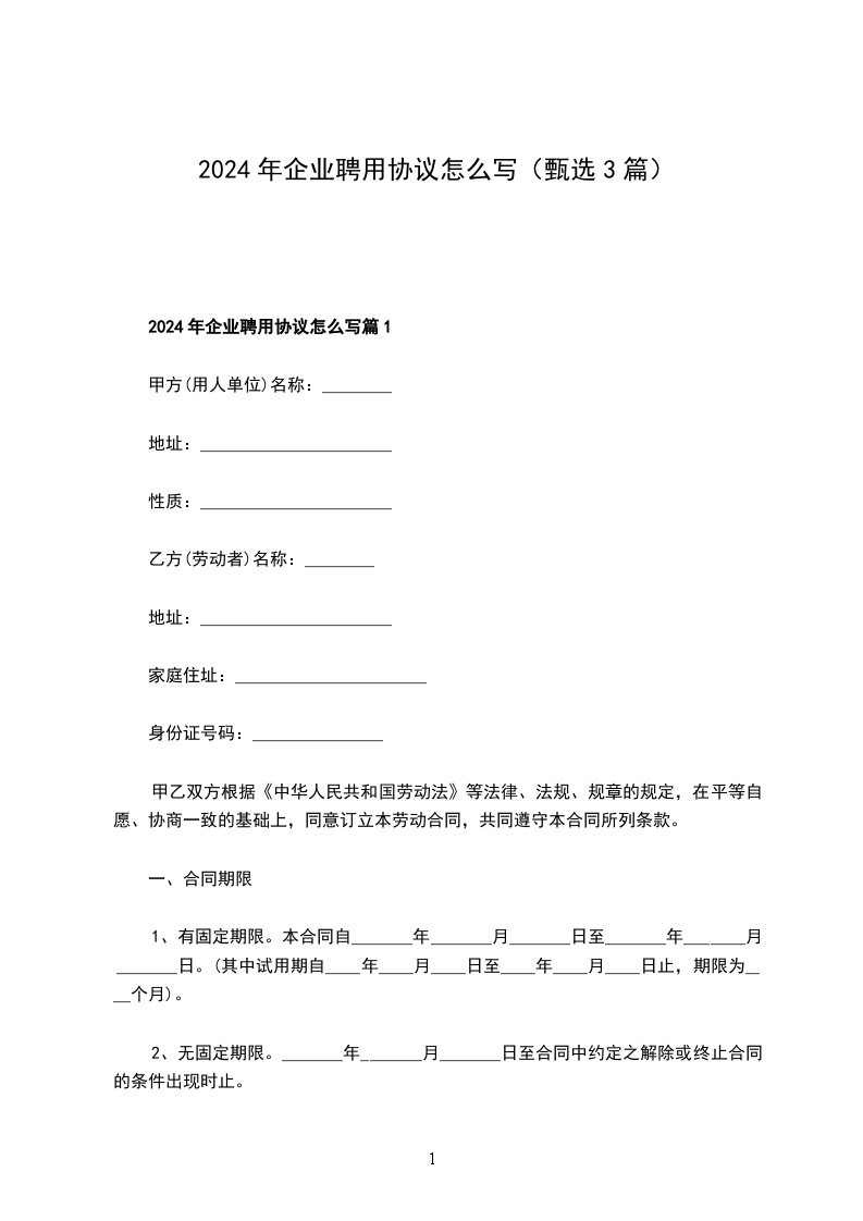2024年企业聘用协议怎么写篇1